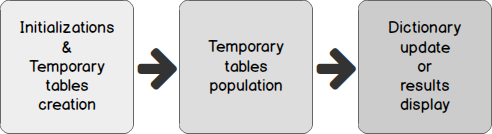 In following, we will first review different objects that are core components of the implementation of the homemade documentation solution. Basically, they are tables or views. Then, we will review the 3 steps in development workflow that are considered in this article.
