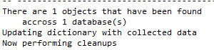As we are in Debug mode, we can scroll down in the Messages part of SSMS and we will get a report on the number of objects it found.