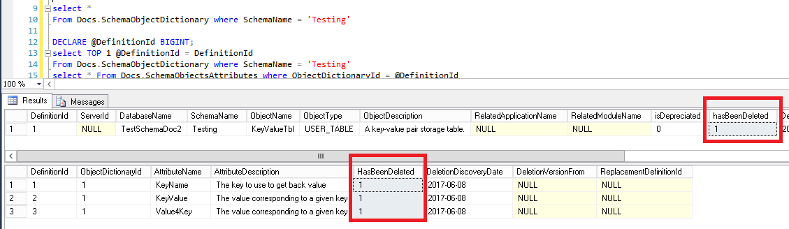 - You could notice the hasBeenDeleted column. With this, documentation can persist an object or attribute deletion. Documentation manager should define the way these records should be managed.