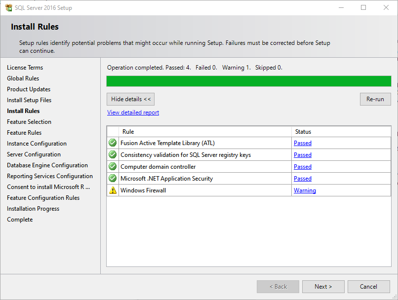 The installer will check the installation rules on the Install Rules screen to ensure that the setup does not encounter any errors. If any installation rule fails, the setup will not continue until the error has been rectified.