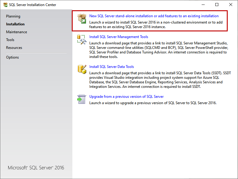 - Perform new SQL Server stand-alone installation or add new features in the existing instance