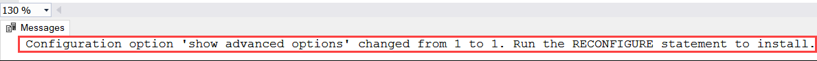 use master go exec sp_configure 'Show advanced options',1 Go reconfigure with override go |