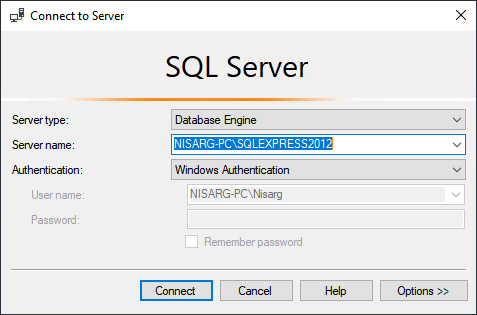 As you can see that we are able to connect to the SQLExpress2012 instance which shows that the installation was successful.