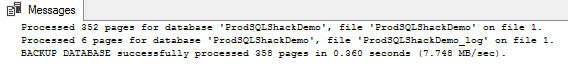 -- Create ProdSQLShackDemo full backup to default path BACKUP DATABASE ProdSQLShackDemo TO DISK = 'f:\Program Files\Microsoft SQL Server\MSSQL14.SQL2017\MSSQL\Backup\ProdSQLShackDemo.bak' WITH FORMAT; GO |