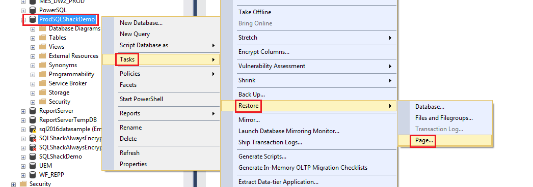 - Browse Object-Explorer, right-click the database ProdSQLShackDemo