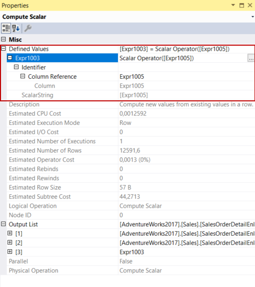 Compute scalar operator only computes a new column without any calculation, the Expr1005 value is assigned to Expr1003.