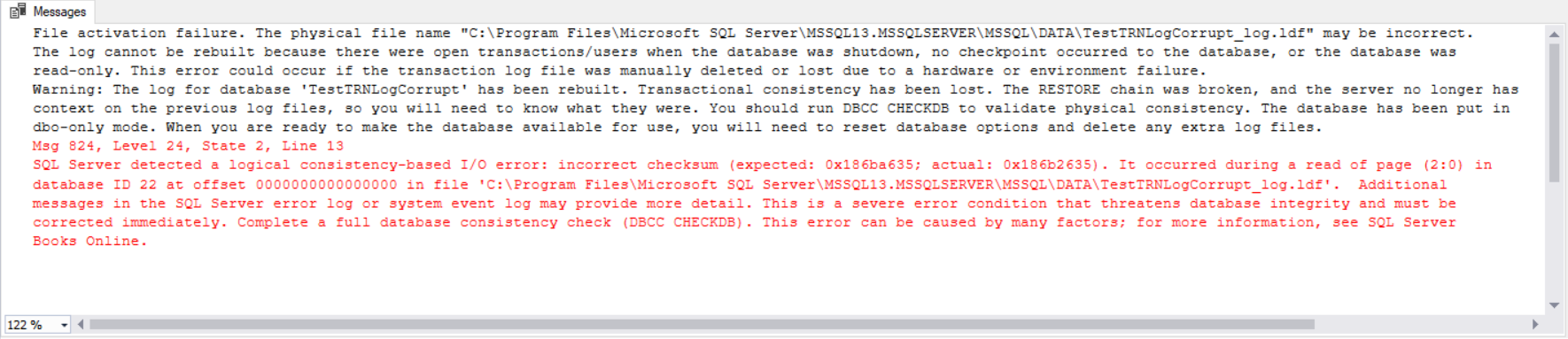DBCC CHECKDB ([TestTRNLogCorrupt]) |