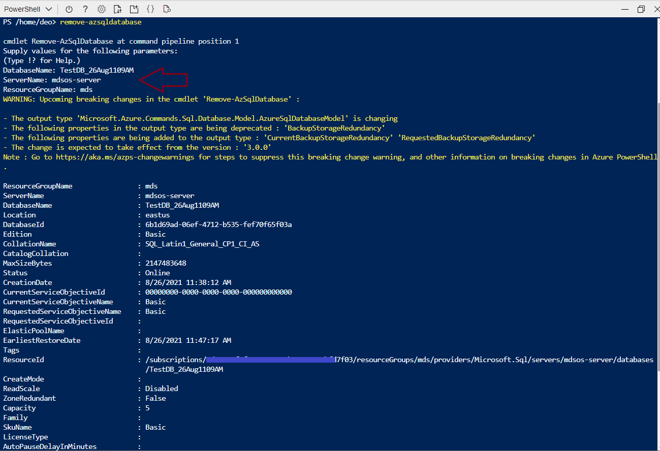 Resource ID: /subscriptions/**************bfd7f03/resourceGroups/MDS/providers/Microsoft.Sql/servers/mdsos-server/databases/TestDB_26Aug1109AM