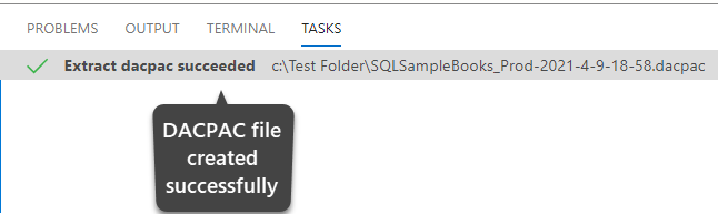 In less than a minute or so the database DACPAC file is ready, saved in the desired location.
