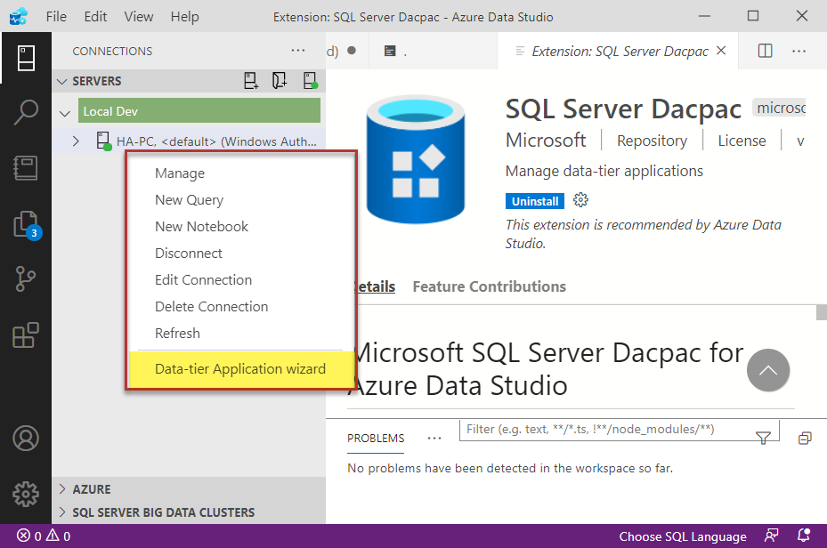 | How to use SQL Server DACPAC extensions in Azure Data Studio |