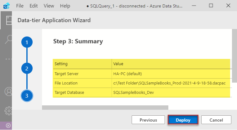 In the final step, click Deploy: