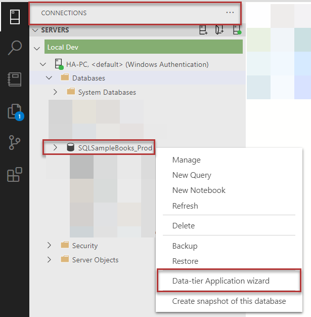 Right-click on SQLSampleBooks_Prod and click Data-tier Application wizard:
