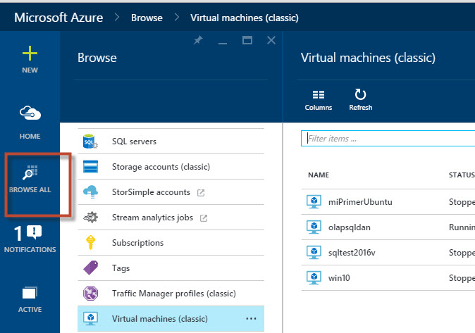 In the Azure portal, select Browse All➜Virtual machines and select the Virtual Machine with SQL Server installed.