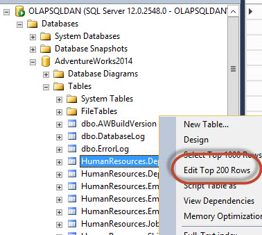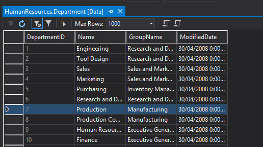 Figure 10. SQL Server Management Studio Verify that the table has the new data.