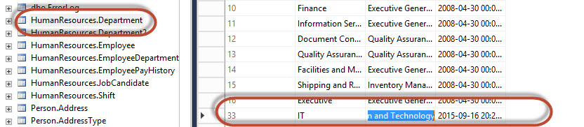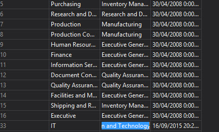 Figure 7. The Department information To insert new data, go to the last row and write new data. In this example, we are adding the IT department.