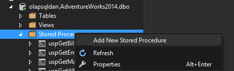 Figure 13. Adding a new stored procedure By default, you will have this code: