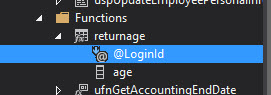 Figure 24. The Function created If you expand the function, you will be able to see that the loginID is the input parameter and the age the column returned.