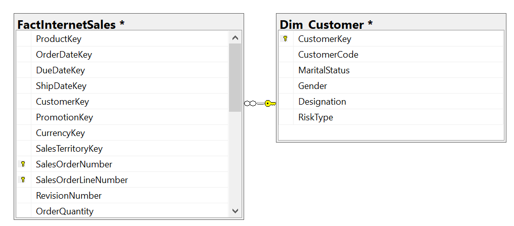 Following is the relationship between the Fact and the Customer Dimension table.
