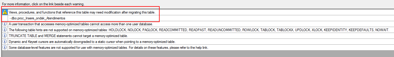 At this stage we dug into all the possibilities inside of SQL Server 2014, in order to facilitate the migration process to the memory-optimized objects. In the next article of this series I will bring up the new enhancements about migration process on SQL Server 2016.
