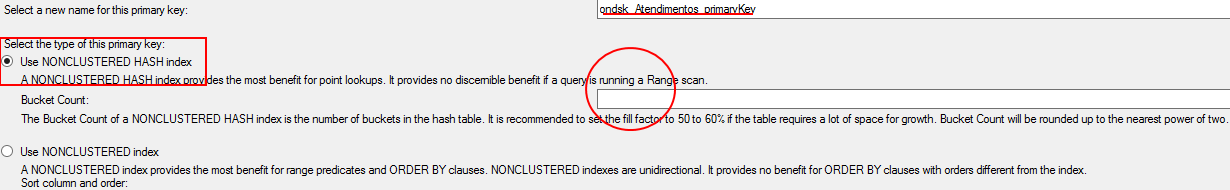 As a last step we must set the appropriate Bucket Count on the Hash Index. As explained on the previous link, the bucket size needs to be set properly otherwise it can significantly impact the workload performance as well the recovery time process of the database. Normally the BUCKET_COUNT should be between 1 and 2 times the number of distinct values on the index key.