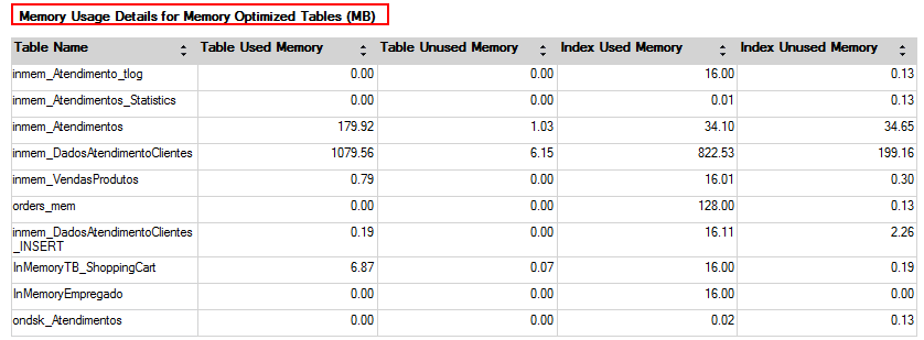 At this portion of the report you can visualize the amount of used memory for the memory-optimized objects, off course that underneath this there is a dynamic management view taking place and showing these results.
