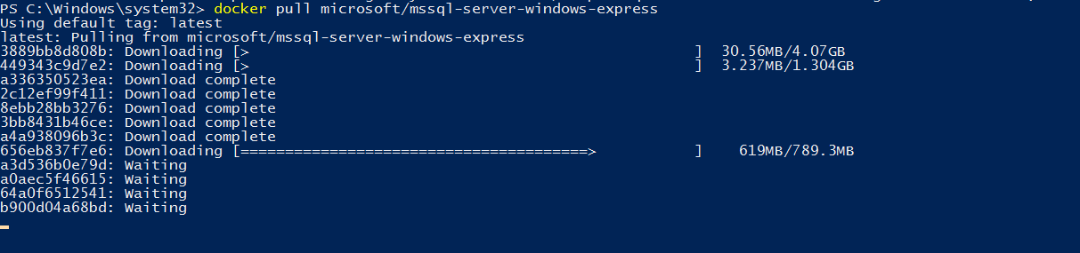 docker run --name sqlshackdemo -d -p 1433:1433 -e sa_password=India@123 -e ACCEPT_EULA=Y microsoft/mssql-server-windows-express |