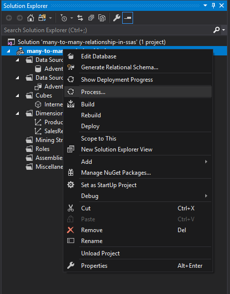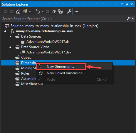 Let’s now define many-to-many relationships in SSAS. You can follow the steps below.