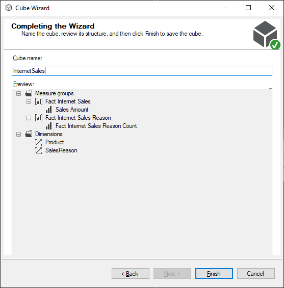 Figure 13 – Complete the cube wizard