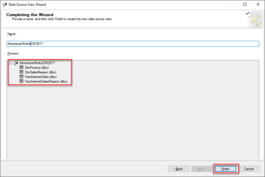 Figure 4 – Completing the Data Source View Wizard