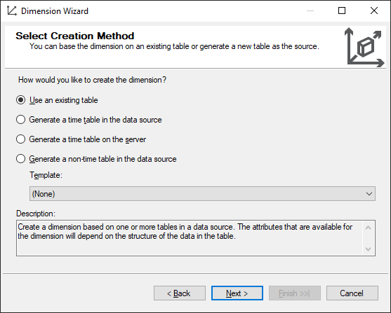 Now that the dimensions are ready, the next step is to create the cube.