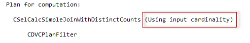 Let’s switch to the Message tab. If you inspect the CSelCalcSimpleJoinWithDistinctCounts output, among the other information you’ll see the following description.