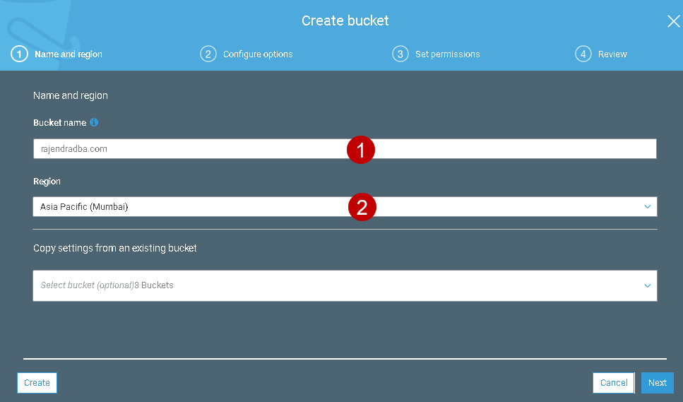 Click on Create Bucket to configure a new s3 bucket that holds contents for our static website. Give a unique bucket name and choose the appropriate region to deploy your AWS resources.