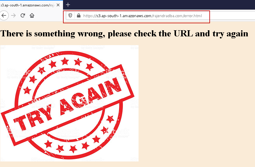 In case you specify a wrong URL, it navigates to the error page that we configured during static website configuration.