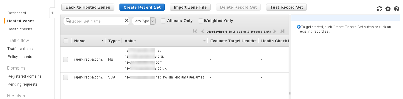 DNS ‘A’ record refers to an IP address of the specified domain. It holds an IPv4 address. Click on the hosted zones, and it shows your registered domain.