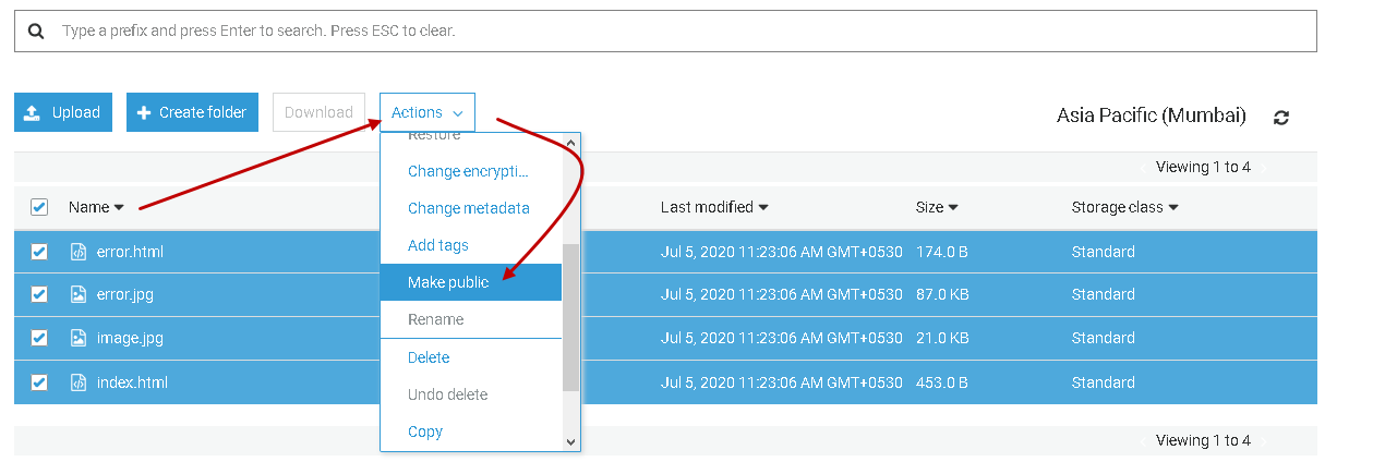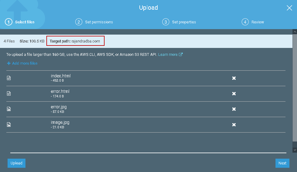 Browse to the S3 bucket and upload all files in the bucket we created earlier.