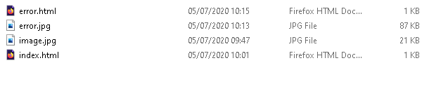 Error.html: It is a custom error HTML page. In case of any error, by default, you receive an error such as HTTP 404 Not Found. You can configure an error web page instead of this default page. I use the following HTML code for error documents