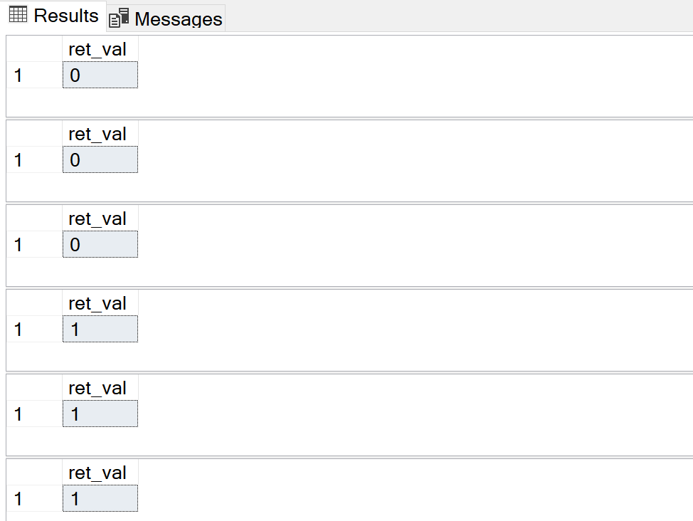 SELECT dbo.f_check_string ('select') as ret_val; SELECT dbo.f_check_string ('kill') as ret_val; SELECT dbo.f_check_string ('exec') as ret_val; SELECT dbo.f_check_string ('tree') as ret_val; SELECT dbo.f_check_string ('dog') as ret_val; SELECT dbo.f_check_string ('7') as ret_val; |