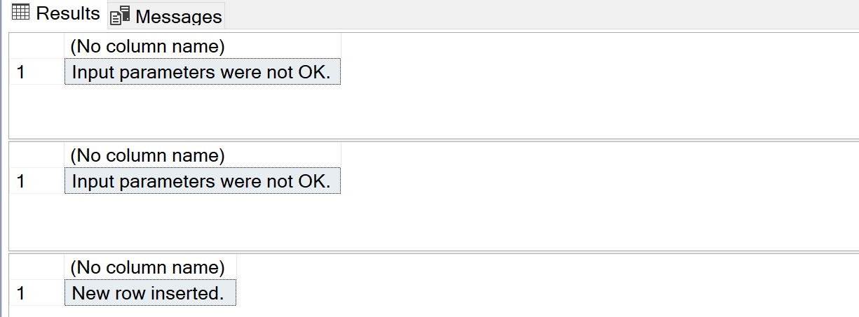 In the first 2 calls, at least one condition fails and therefore the insert statement hadn’t been fired. In the 3rd call, everything was OK, and we’ve inserted a new row.