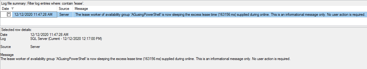 In the SQL Server logs on the primary replica, you get a message from the lease worker. The lease worker thread and resource host maintains a time-to-leave (TTL), and it gets updated each time threads wait up after a signal from another resource.