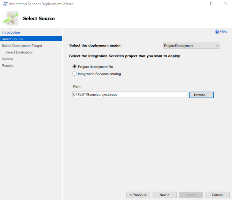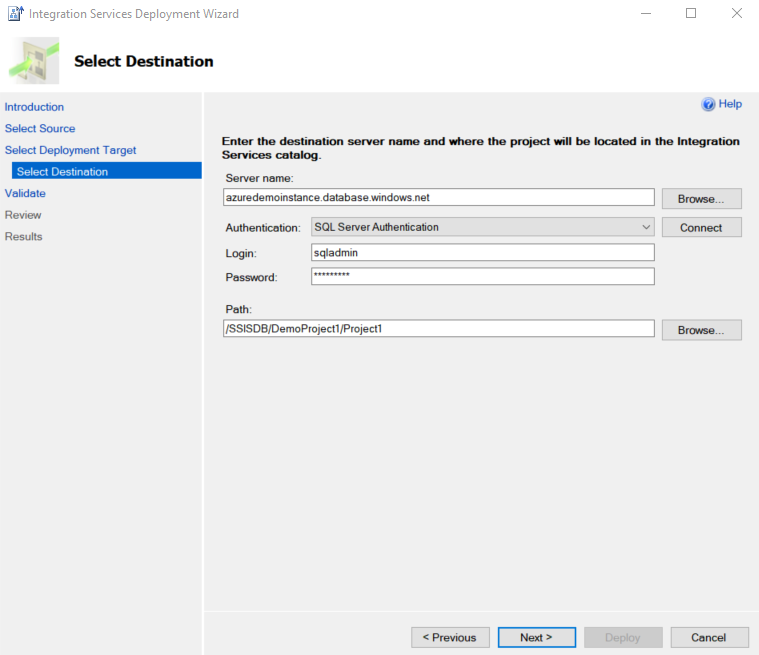 The SSIS package project deployment in the Integration service catalog in the Azure cloud is similar to the on-premise SSIS. Right-click on the project catalog folder and deploy. It launches the Integration Service Deployment wizard.