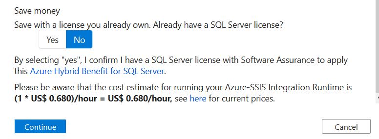You get an estimated cost of running Azure-SSIS Integration runtime for your configuration.