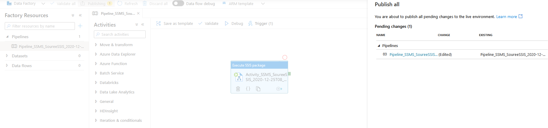 Click Ok, and it creates an ADF pipeline with the Execute SSIS Package. The ADF pipeline has triggered the job schedule, and we configured it earlier.
