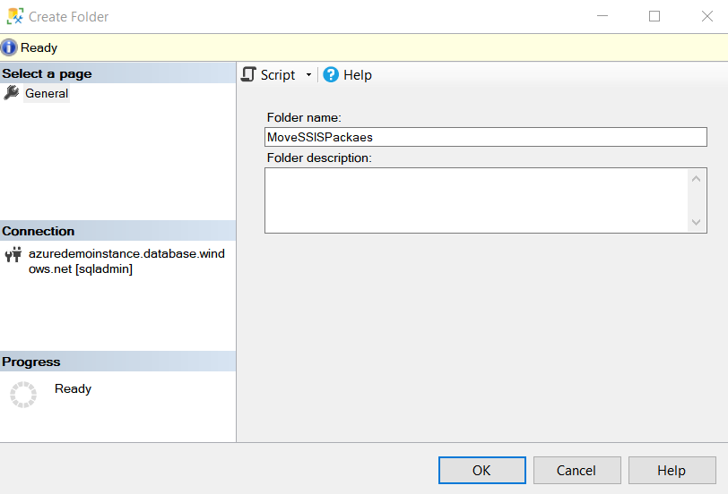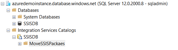 Click Ok, and you get a new folder for your SSIS package projects deployments in the SSISDB catalog of Azure SQL Database.