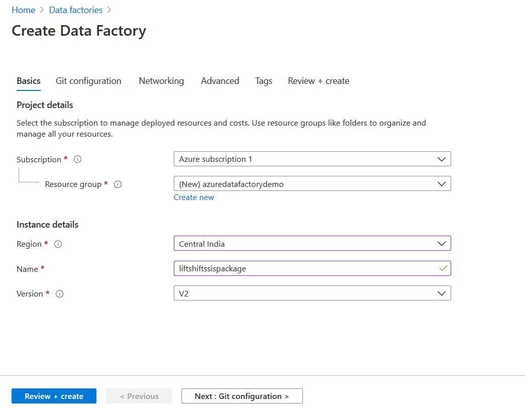 - ADF version: Make sure you select version V2 for Azure-SSIS configuration