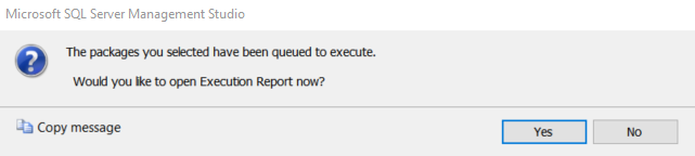 Click Ok, and it starts execution of the package in Azure-SSIS. Click Yes to open the execution report.