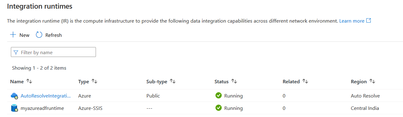 In the Integration runtime setup, specify a name, description (optional), location (same as ADF location).