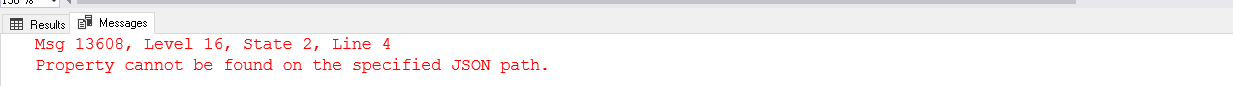 We do not get any error message. It shows similar JSON in both original and updated JSON. You should recall here that by default, JSON_MODIFY() function uses lax path mode.