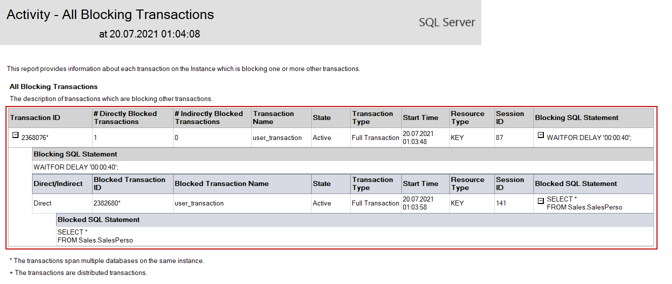 Using All Blocking Transactions report to monitor SQL Server blocking problems