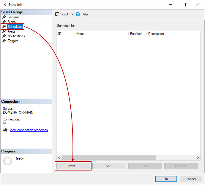In New Job form, select the created schedule, and click OK to save all job settings.