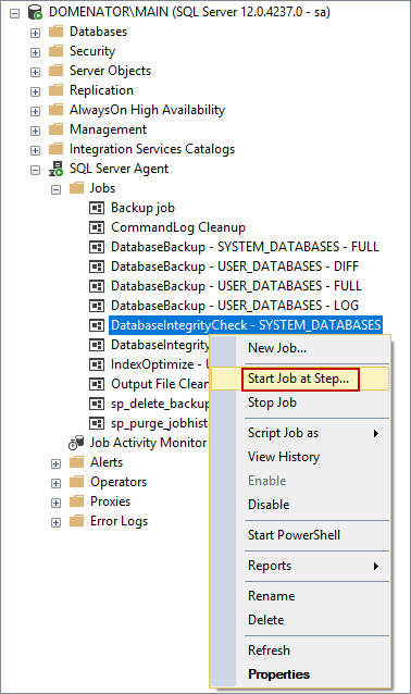 The job will now run on the defined schedule. If it needs to be run manually, right click on the job, and select Start job at Step…